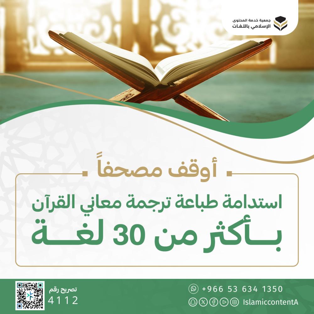 استدامة طباعة ترجمة معاني القرآن وحقيبة دعوية بأكثر من 30 لغة حول العالم